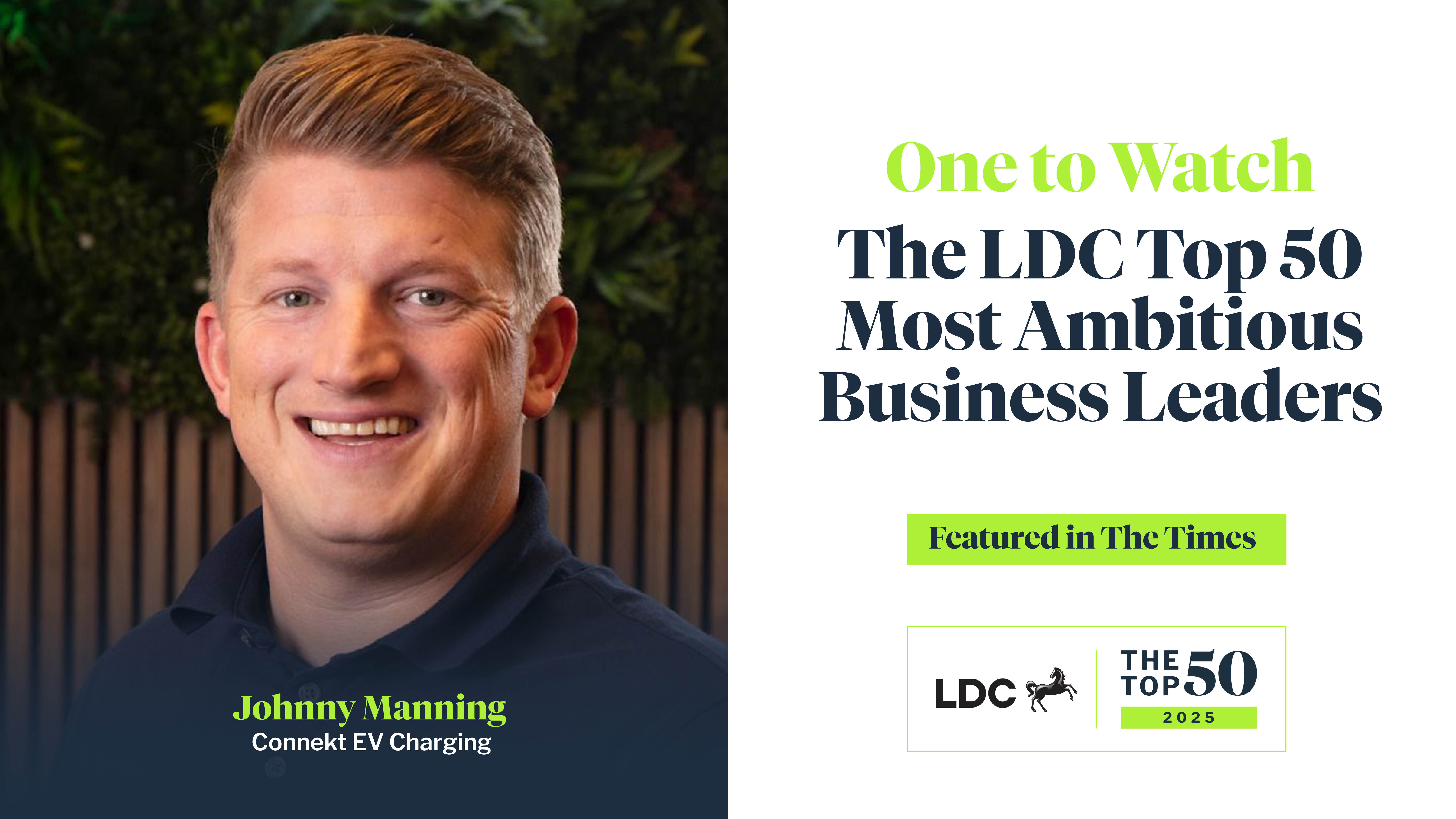 Johnny Manning, Founder & CEO of Connekt EV Charging has been recognised as One to Watch in The LDC Top 50 Most Ambitious Business Leaders programme for 2025.